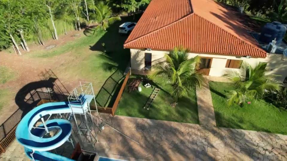 1 casa sede com 4 suítes piscina com tobogan e churrasqueira.