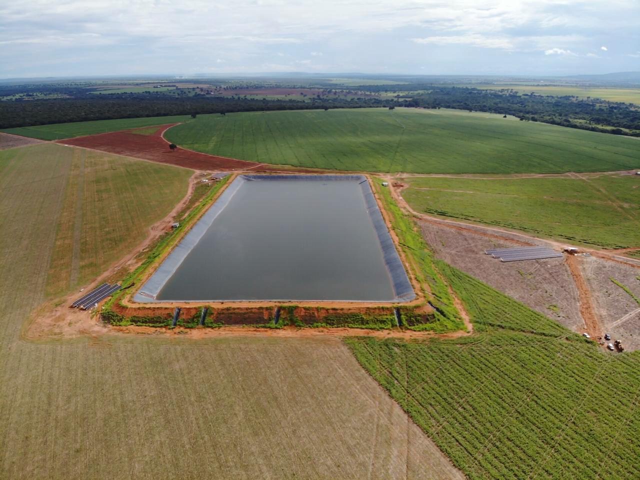 Conjunto de placas solares, que aciona poço e alimenta todo sistema de água da fazenda.