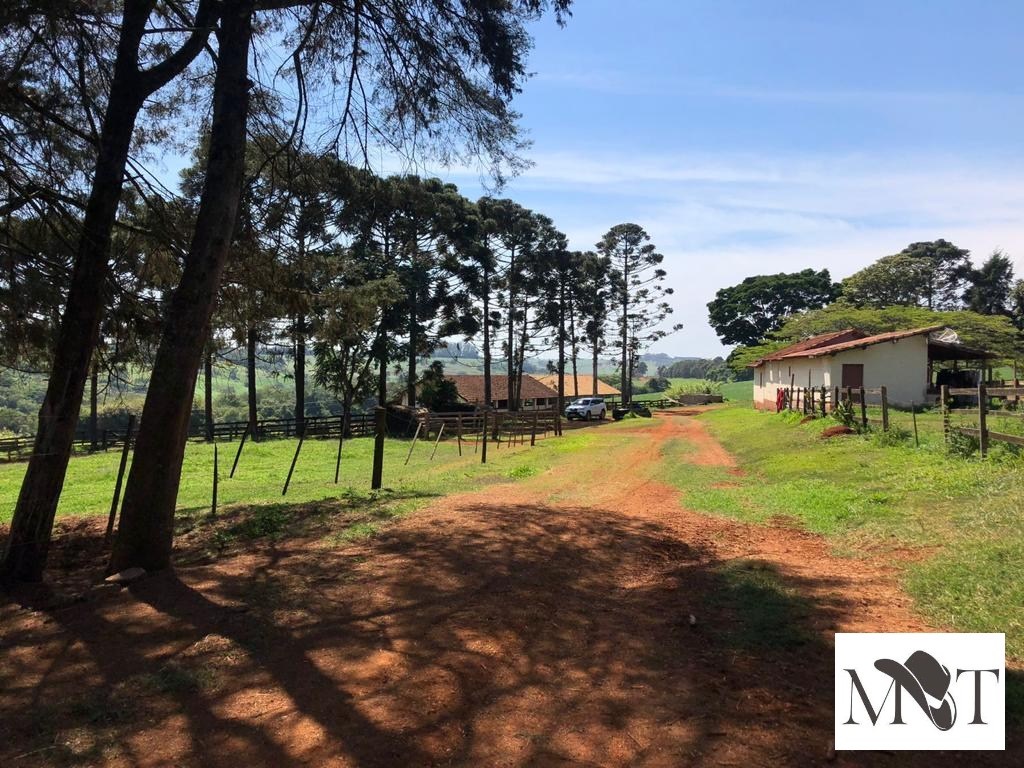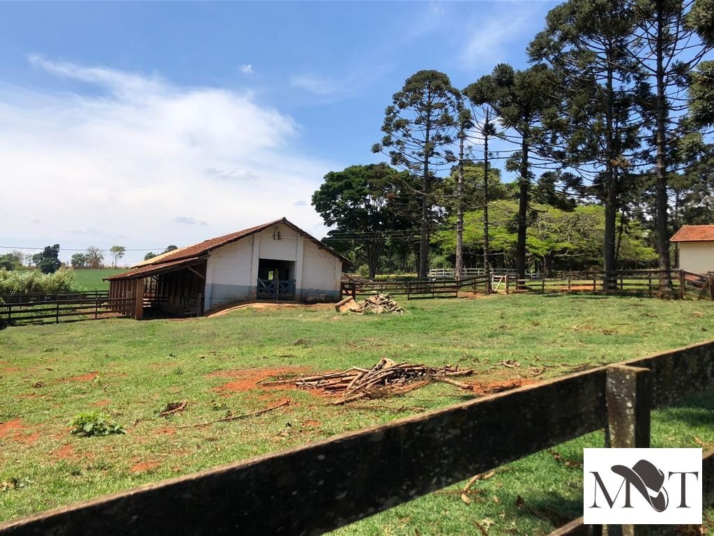 Propriedade rural com casa principal de 4 dormitórios, piscina, casa para caseiro, curral completo, área de confinamento e galpão.