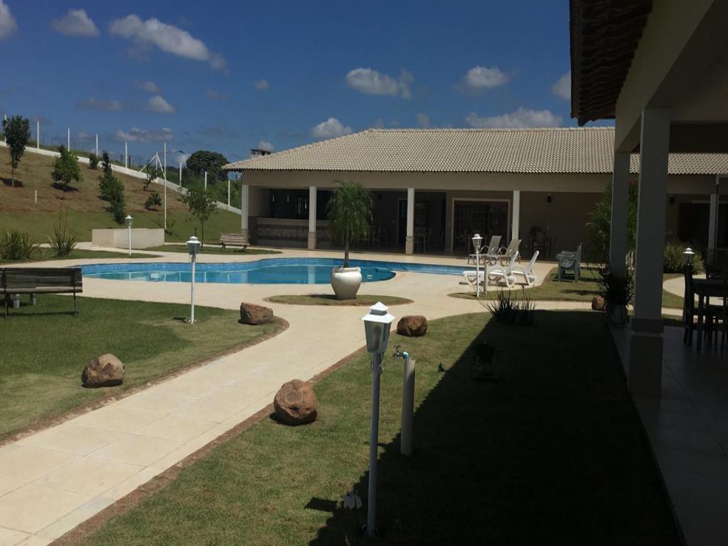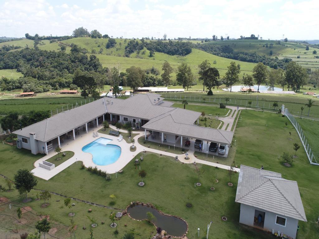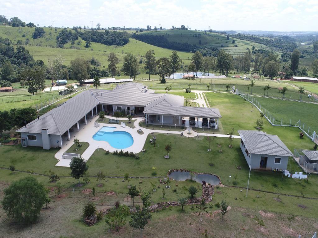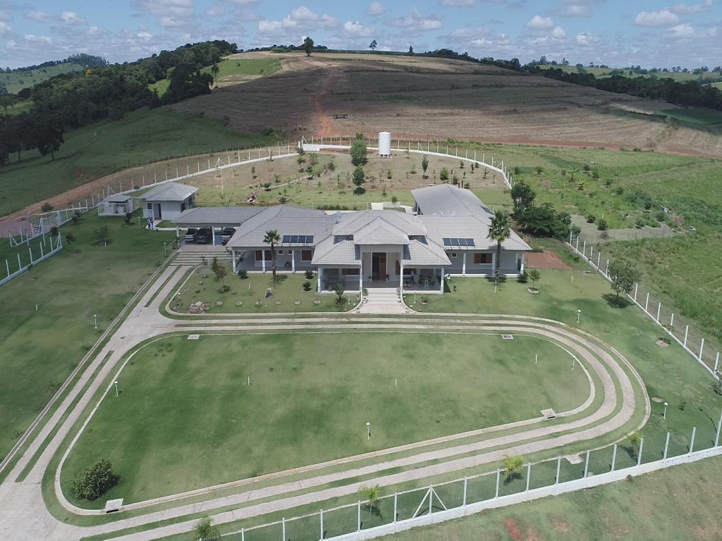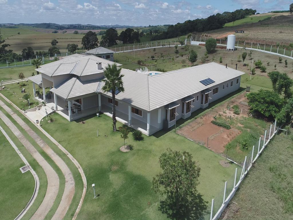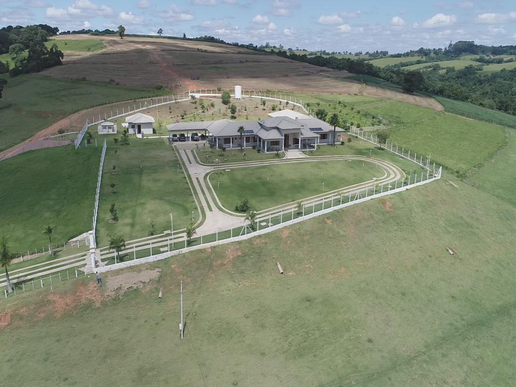 Propriedade rural à venda com casa sede recém-construída de 1.200 metros quadrados, incluindo salão de festas e jogos, piscina, casa de hóspedes, três casas para caseiros, escritório, laboratório, dois galpões para ovinos, um estábulo, galpão para máquinas e implementos, trincheira de silagem e curral.