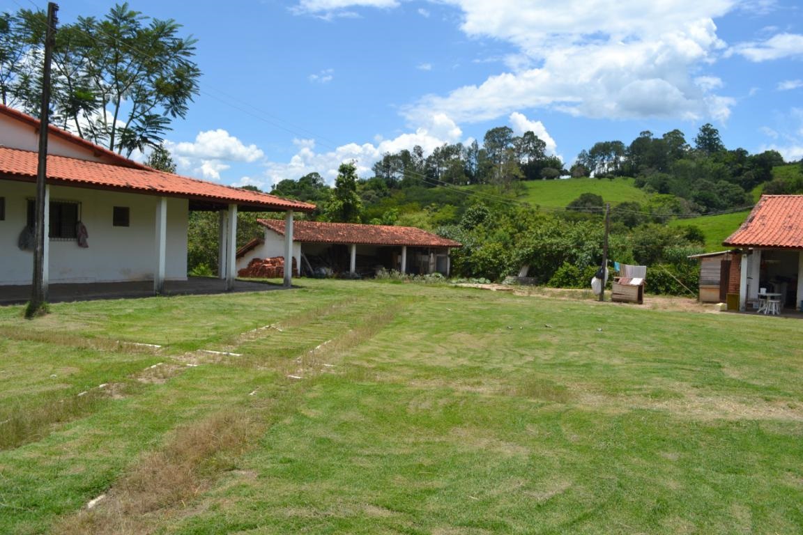 Propriedade rural com casa principal modesta, alojamento para funcionários e estrutura de curral.