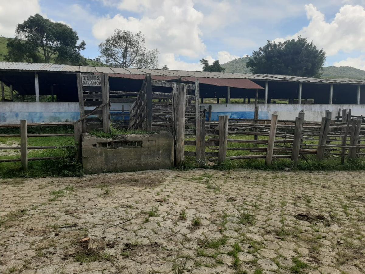 Propriedade rural com casa sede, casas de caseiro e mangueiro.