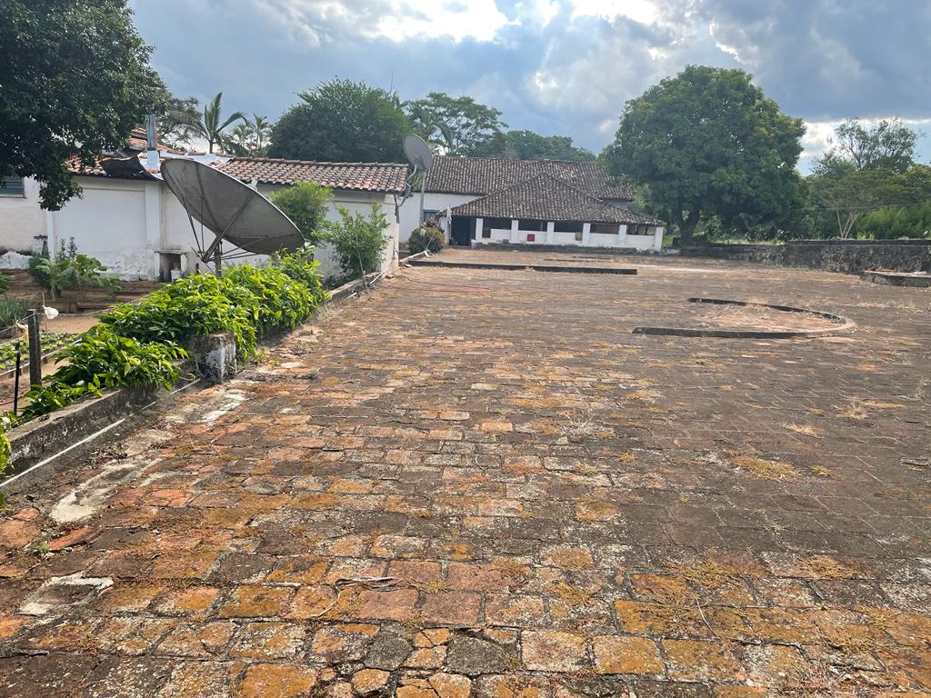 A propriedade inclui uma casa sede antiga com piscina que necessita de reparos, além de tulha, terreirão e galpões.
