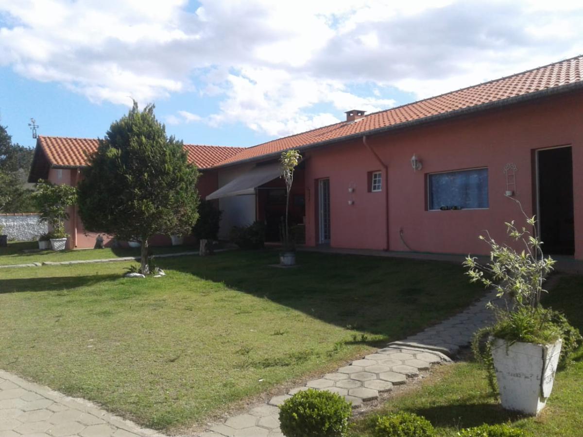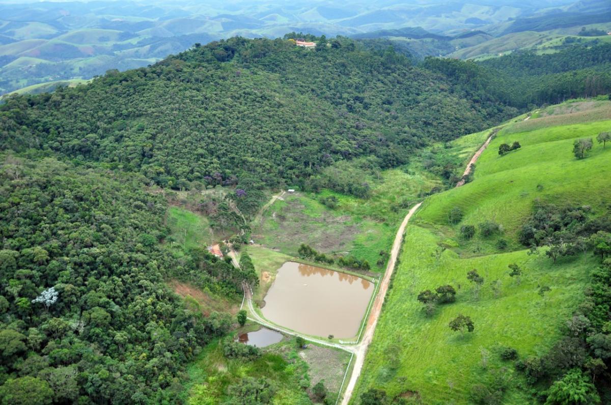 Sítio de 8 alqueires paulista com pasto, mata e pomar. Sede com 3 dormitórios (sendo 1 suíte), sala com lareira, lavabo, banheiro social, copa, cozinha, lavanderia, varanda e garagem. Casa de hóspedes com 1 dormitório, área gourmet com churrasqueira, fogão e forno à lenha, e sauna. Lago, terreno ondulado, e localizado em Guaratinguetá, SP