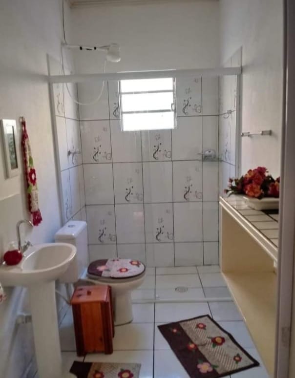 Casa totalmente mobiliada com 120m² de área construída, incluindo 3 suítes, sala ampla em formato L, cozinha equipada com fogão à lenha e serpentina, área de serviço, deck de madeira, varanda com churrasqueira e pia.