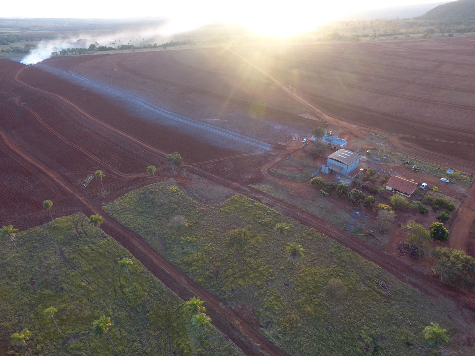 Casa, curral e um barracão para guarda de máquinas, equipamentos e insumos, com oficina.