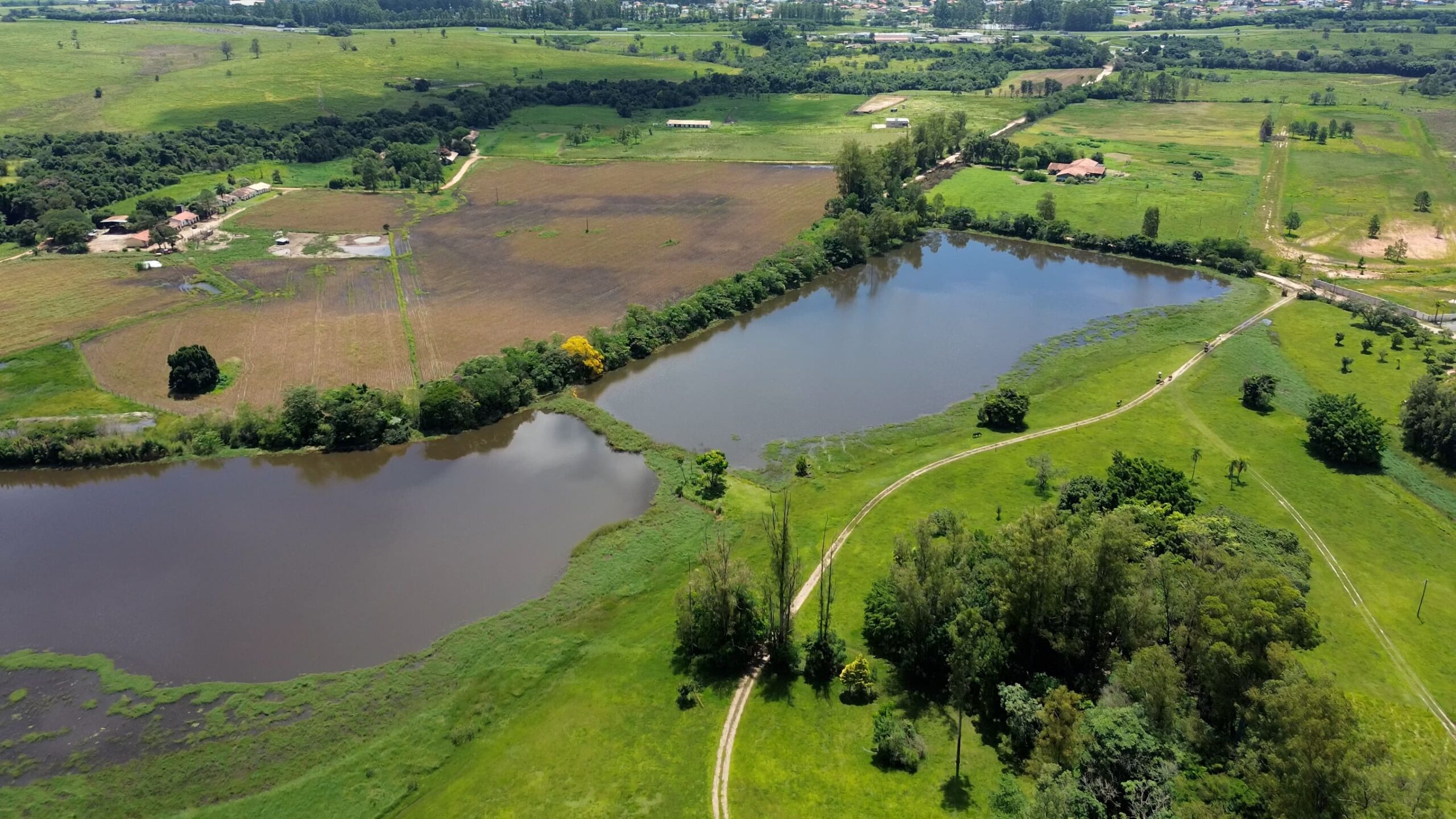 Represa grande , corrego e lago